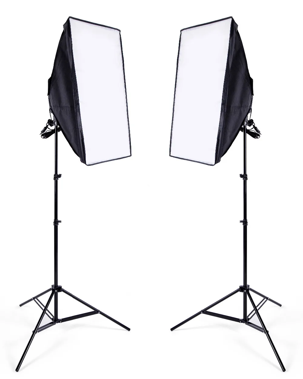 BEST QUALITY 4lamps softbox photo studio kit 8pcs 24w LED E27 Bulb Photo stuido Soft Box set 2light stand 2softb