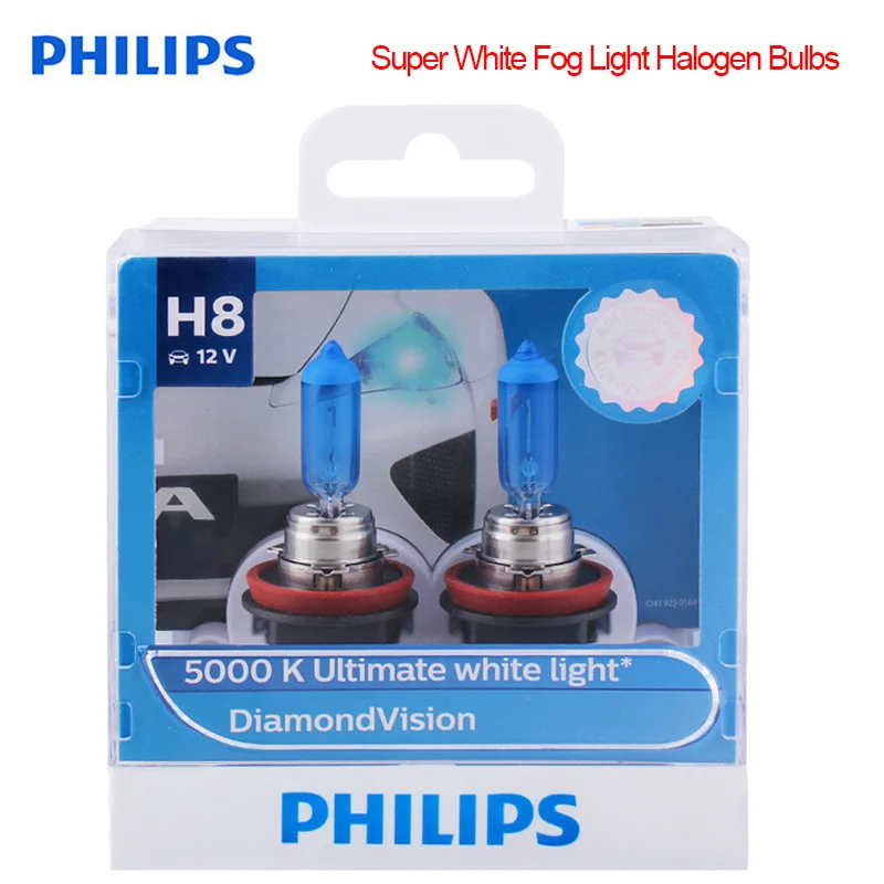 Philips Original H8 12V 35W Diamond Vision 5000K Xenon Super White Fog Light Halogen Bulbs Car Lamp