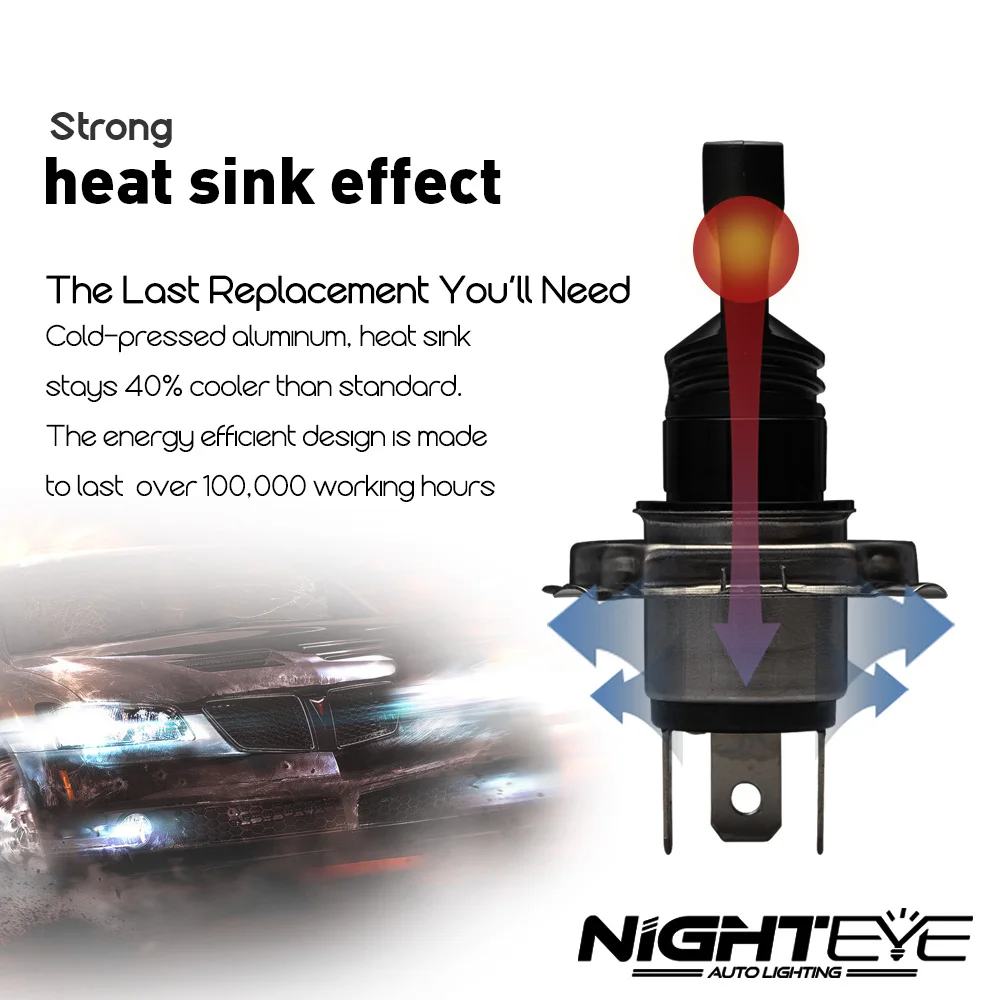 NIGHTEYE H4 9003 Led Car Light Led Auto Bulb 1600LM 12V 80W/Set 6500k With CSP LED Chips Bulb Led A